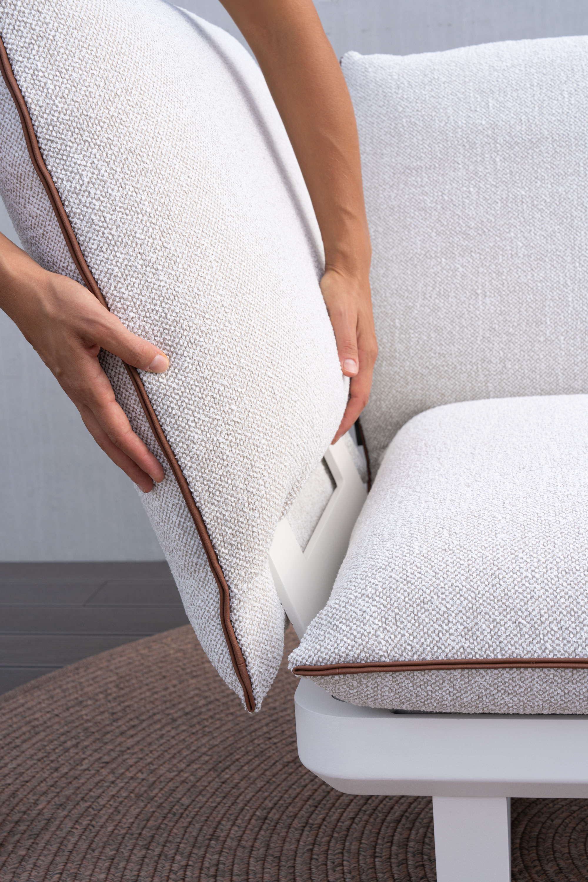 모든 아웃도어 컬렉션에 사용되는 소재는 다양한 야외 환경에 최적화되도록 설계되었습니다. 넓은 온도 변화는 물론, 자외선과 수분, 염분 등 다양한 기후 조건에도 뛰어난 내구성을 유지합니다. 또한 패브릭 역시 고품질 아웃도어 전용 소재를 사용해, ATMOSPHERA에서 직접 제작하며 완성도를 높이고 있습니다.